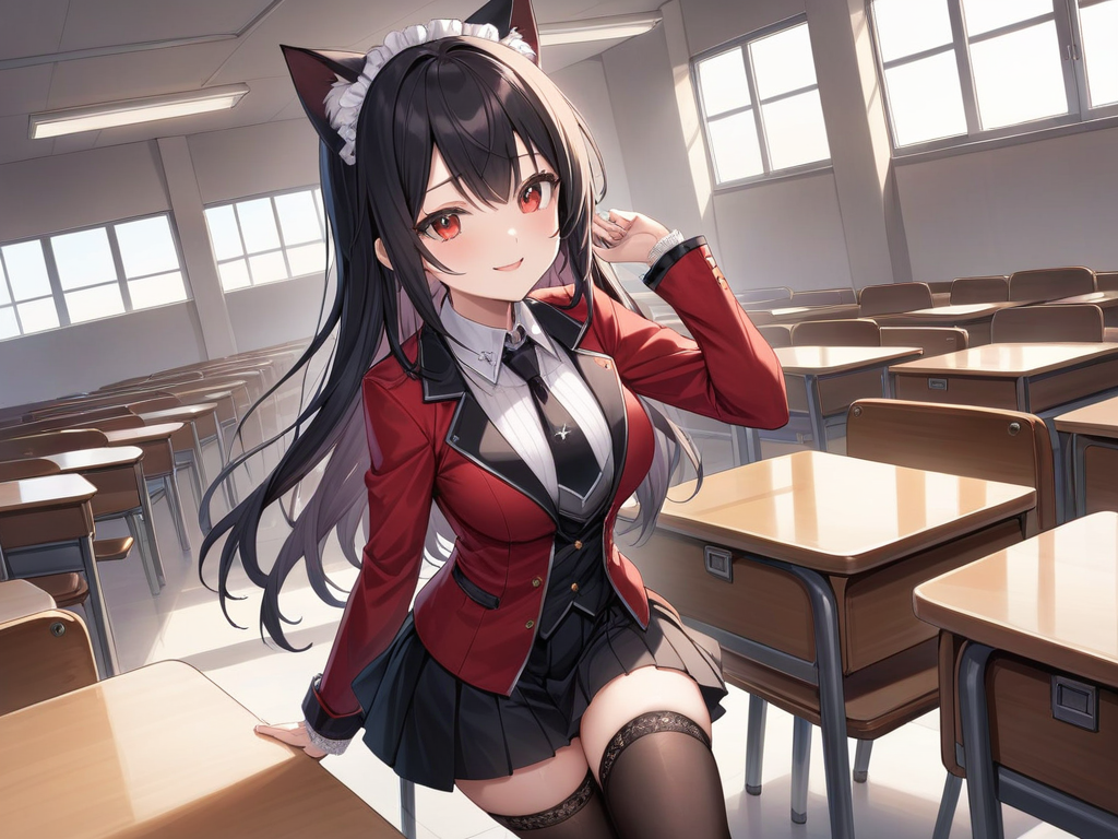 在校园的隐秘角落,有一处被神秘氛围笼罩的社团教室 —— クラブの教室,这里即将揭开一场梦幻与哥特交织的视觉盛宴。一位令人瞩目的女高美少女 —— ルナ・S・ロゼリーナ,宛如从暗夜中走来的精灵。她,是拥有灵动魅力的女高中生美少女,精致的脸庞上,一双眼眸仿若藏着璀璨星河,深邃而迷人,灵动的眼神仿佛在诉说着社团里的奇闻轶事。那头如绸缎般的黑发,肆意地散落在她的肩头,随着她的动作轻轻摆动,为她增添了几分俏皮与不羁。而最引人注目的,当属她身上那件赤いコート。这件红色外套,绝非普通的服饰,它像是用激情与神秘交织而成的艺术品。鲜艳的红色,在教室略显暗沉的光线中跳跃而出,如同燃烧的火焰,又似暗夜中指引方向的信号灯。衣摆随着微风轻轻摇曳,仿佛带着生命一般,诉说着露娜的个性与故事。哥特风格的独特剪裁,凸显出她纤细的腰肢,精致的纽扣与暗纹,在不经意间流露出低调的奢华,每一处细节都彰显着ドーン・オポチュニティ风格的独特魅力,让人不禁想要探寻这件外套背后隐藏的秘密。